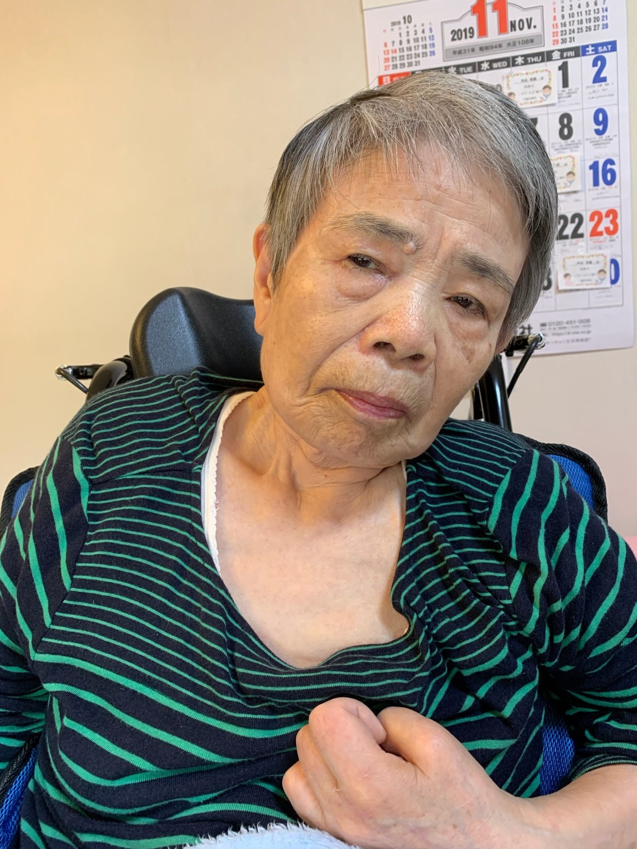2019年11月25日(月) ほほ笑の森だより < お知らせ 散髪してすっきりされました(*´ω`*) しっかりと前にある鏡を見てます( *´艸`)笑 長かった髪がすっきり短くなりました^-^ みなさんとてもお似合いです(^^♪